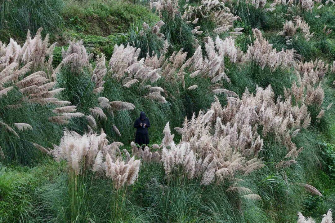 这片位于海拔400-1600米的梯田景区,今秋别具特色。蒲苇花海与周边的红瑶古寨、高山瀑布相映成趣,构成了一幅绝美的田园画卷。游客沿着观光步道穿行其间,仿佛置身银浪翻滚的梦幻世界。
