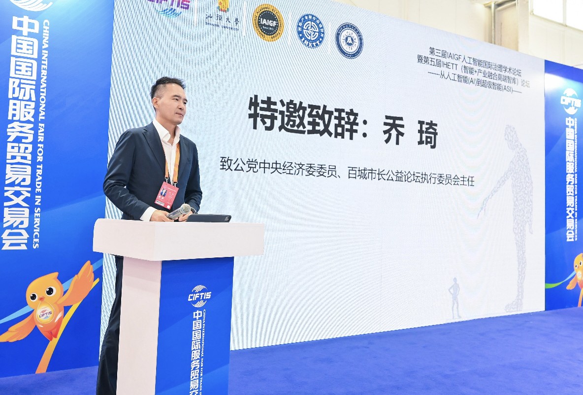 2025年9月14日,2025 中国国际服务贸易交易会系列活动第三届人工智能国际治理学术论坛(lAIGF)暨第五届IHETT(智能+产业融合高端智库)论坛在中国服贸会北京首钢园主会场开幕。